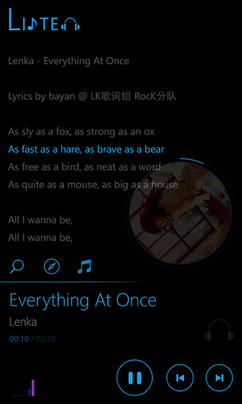 ২. Listen: অত্যন্ত সুন্দর ও সিম্পল Now Playing স্ক্রিন। থাকছে লিরিকস দেখার সুবিধাও।