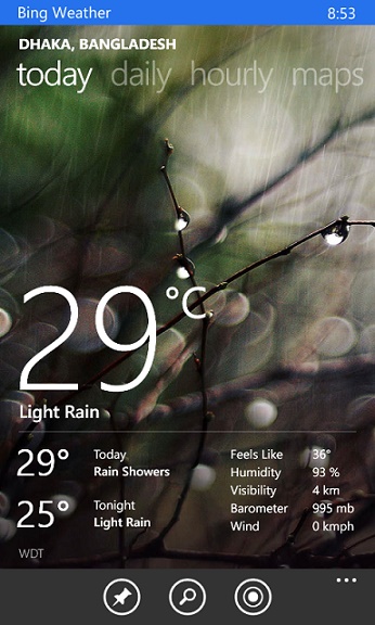 ৪. Weather: Weather এর অনেক অ্যাপ আছে স্টোরে। তবে অধিকাংশের সাইজ বড্ড বেশি। এই অ্যাপটি সাইজে ছোট, দেখতেও সুন্দর আর দরকারি সব তথ্যই পাবেন।