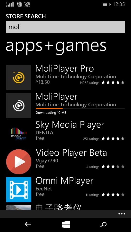 আপনারা যারা Windows ফোন ব্যবহার করেন, তারা জানেন যে কিছুদিন আগেই VLC এর স্ট্যাবল ভার্সন স্টোরে রিলিস করা হয়। কিন্তু, এখনো এটি পুরোপুরি ভাবে সব ভিডিও ফাইল সাপোর্ট করে না। সেই দিক থেকে Moli Player এখন পর্যন্ত Windows ফোন এর বেস্ট ভিডিও প্লেয়ার। তবে, এটি একটি প্রিমিয়াম অ্যাপ্লিকেশন। এটি trial হিসেবে কিছুদিন ব্যবহার করার পর আপনাকে কিনতে বলবে।