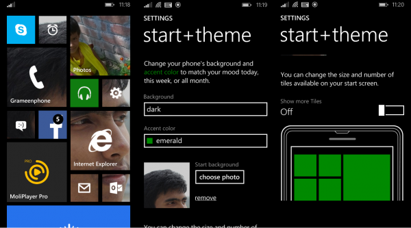 এছাড়াও যাদের ফোনের ডিসপ্লে বড় তারা Show more tiles নামেও একটা অপশন পাবেন যাতে Start Screen এ আরো বেশি টাইলস রাখা যায়।