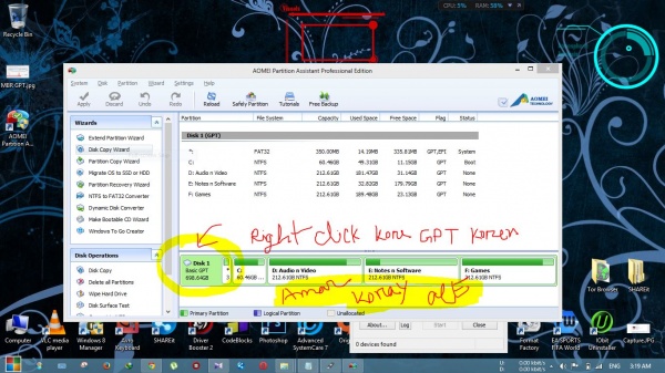 ২)এটা না করা ভাল, কিছু ল্যাপটপে ডিস্ক এর স্পীড কিছুটা কমে যায়(১/২mb average) অ্যান্ড উইন্ডোজ ৮/ উইন্ডোজ ৮.১ এ স্লীপ মোডে থেকে জাগাতে সমস্যা করতে পারে (সবার হয় না hp তে হতে পারে তবে ডেস্কটপে কোন সমস্যা হওার কথা না) উপরের way কাজ না করলে করতে পারেন এখন আপনাকে উইন্ডোজ দিতে হলে হার্ড ডিস্ককে জিপিটি তে নিতে হবে না ,MBR এই থাকবে এখন যা করতে হবে আপনার উইন্ডোজ টিকে iso ফাইল করে নিন/ download করে নিন (poweriso use করতে পারেন) এখন rufus ডাউনলোড করে MBR partion এ একটা Bootable পেনড্রাইভ বানান then বুট মেন্যু থেকে সাধারন process এ setup দেন ।