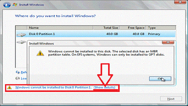 এইটা হচ্ছে কারন আপনার হার্ড ডিস্কে mbr partion টেবিল করা আছে ,(এইখানে mbr/gpt পার্টিশন টেবিল কি? সেটা বর্ণনা করলাম না কারন সেটা নেয়াই একটা tune করা যাবে ).........নতুন windows ডিস্ক কিনে নিয়া আসছেন but সেট-আপ হচ্ছে না বারবার ডিস্ক Change করে লাভ নেই কারন বেশীরভাগ লোকল ভাবে বানানো windows 8.1/8 ডিস্ক ই GPT partition table এর জন্য বানানো। কি সমস্যা?? , কিন্তু সমাধান টা কি ???
