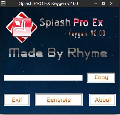 For Keygen : +++++++++++++ Use this link : Splash PRO EX Keygen V2.00.exe +++++++++++++