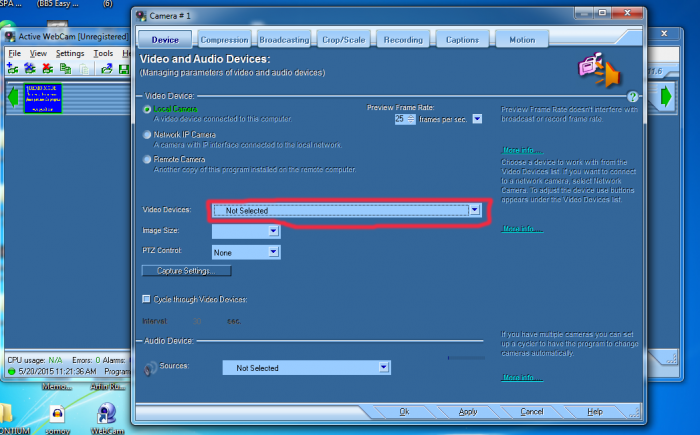 উপরের ছবিতে লাল দাগ দেওয়া জায়গায় ক্লিক করুন। ক্লিক করলে আপনার কম্পিউটারে লাগানো সবগুলো WEBCAM এর নাম লিস্ট