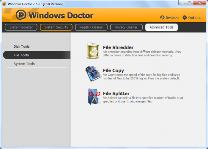 সফটওয়্যারটিতে রয়েছে এডভান্স ফাইলম্যানেজমেন্ট টুলস যেটা আপনাকে দিবে সিকিউরলি ফাইল ডিলেশন মেথোড, ফাইল কপি সুবিধা এবং ফাইলকে স্প্লিট করা কিংবা মার্জ করার সুবিধা। সব ফিচারগুলো নিচে থেকে এক নজরে দেখে নিন-