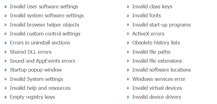রেজিস্ট্রি ক্লিনার নিম্নোক্ত ইস্যুগুলো হ্যান্ডল করবে