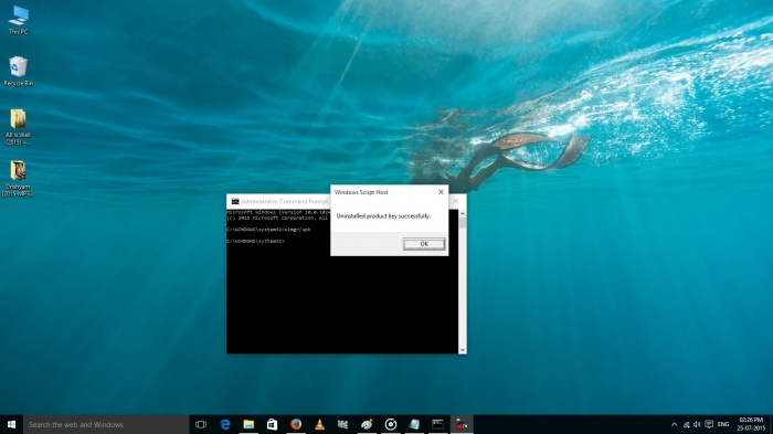 একটা ম্যাসেজ আসবে "Product key successfully uninstalled"