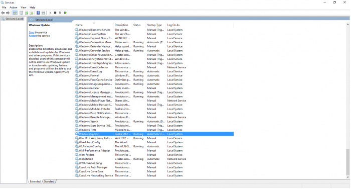 View Local Services এ windows update সিলেক্ট করবেন ঠিক করে না হলে উইন্ডোস আপডেটর জায়গাতে অন্য কোনো সার্ভিস বন্ধ হয়ে যাবে।
