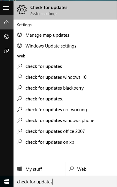 টাইপ করুন সার্চ বার-এ Check For Update নিচের ছবির মতো press ENTER