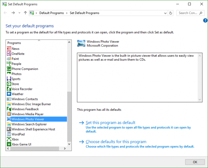 এতে করে শুধু মাত্র Windows Photo Viewer এর default option ছাড়াও অন্যান্য প্রোগ্রাম এর default option change করতে পারবেন।
