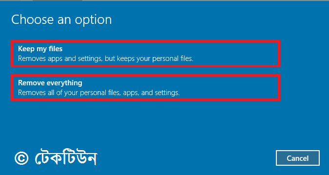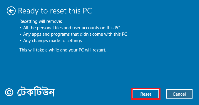 উইন্ডো ৮.১ থেকে রিসেট অপসন উপলব্ধ আর উইন্ডো ১০ ও সেই অপসন আছে।