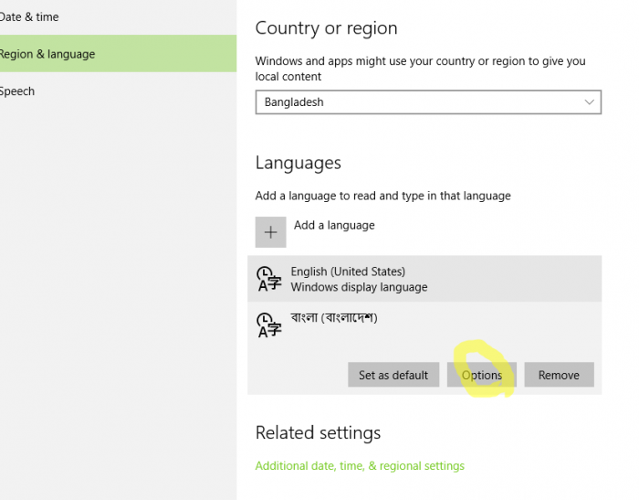 বাংলা (বাংলাদেশ) সিলেক্ট করুন Option এ ক্লিক করুন