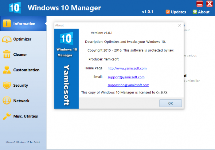 Yamicsoft উইন্ডোজ 10 ম্যানেজার