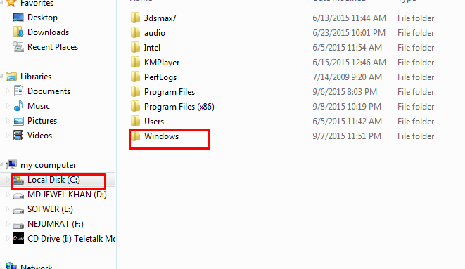 ১।প্রথমে Local Disk(c) ক্লিক করুন তারপর Windows ক্লিক করুন।অথবা ছবি ফলো করুন