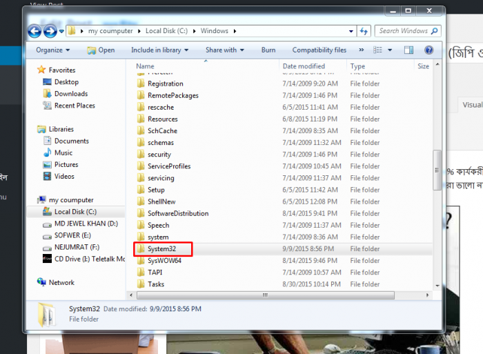 ২। এর পর System32 ক্লিক করুন।অথবা ছবি ফলো করুন