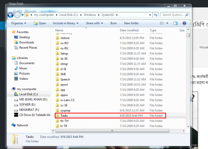 ৩। এর পর Tasks নামের ফোল্টার টি ডিলেট করুন।ছবি ফলো করুন