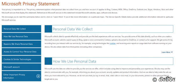 আপনাদের জন্য রইলো মাইক্রোসফট প্রাইভেসী টার্মস লিংক চাইলে নিজে দেখতে পারেন। লিংক