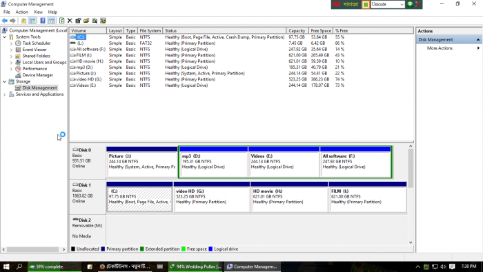 প্রথমে Computer Management এ যান। নিচের Screen shoot এর মত Disk Management এ ক্লিক করুন--