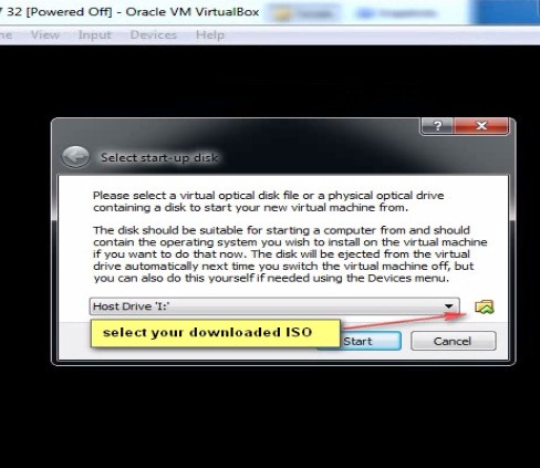 খ) নতুন তৈরী করা ভার্চুয়াল মেশিন চালু করলে ই একটি উইন্ড আসবে সেখান থেকে আপনার Download করা ISO ফাইলটি দেখিয়ে দিন। নতুনদের জন্য এটাই সহজ পদ্ধতি।