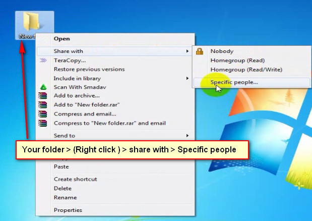 01. আপনার মেইন মেশিনের যে ড্রাইভ বা ফোল্ডারকে শেয়ারিং করতে চান তাত রাইট বাটন ক্লিক করে share with > specific People নির্বাচন করুন।