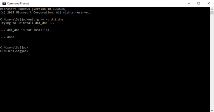 পরে স্টেপে এই কমান্ডটি পেষ্ট করে এন্টার চাপুন netcfg -v -u dni_dne নিচের চিত্রের মত করে