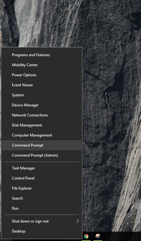 কাজটি করার জন্য প্রথমে কমান্ড প্রমপট খুলুন, কমান্ড প্রমপট খুলতে স্টার্ট বারের উপর রাইড বাটন ক্লিক করুন। নিচের চিত্রের মত