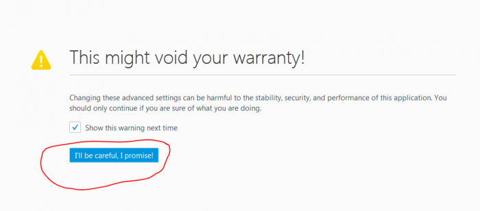 প্রথমে মজিলা ফায়ারফক্স ব্রাউজার ওপেন করুন।এবার Firefox address বারে লিখুন about:config তারপর enter বাটন চাপুন