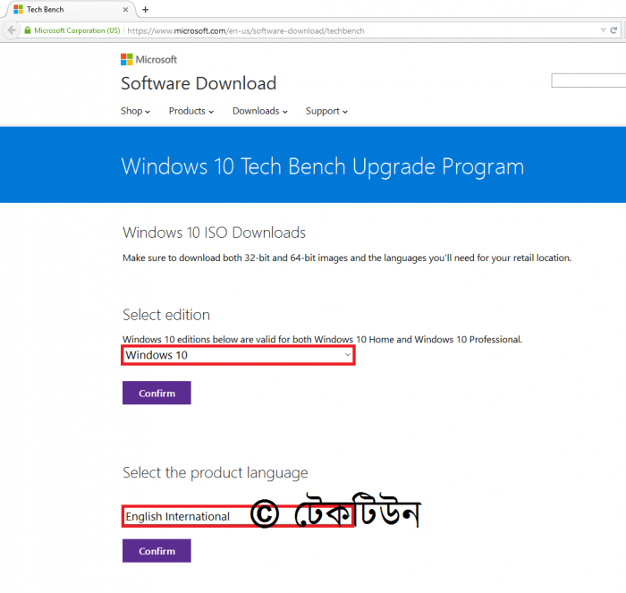আমি উইন্ডোজ ১০ প্রো এবং ইন্টারন্যাশনাল ইংলিশ সিলেক্ট করেছি উদাহরন হিসাবে প্রয়োজনে আপনি অন্য কিছুও সিলেক্ট করতে পারেন।