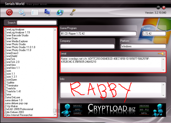 আজ আমি আপনাদের সামনে এমন একটি সফটওয়্যার নিয়ে এসেছি যা ব্যবহার করে আপনি পেয়ে যেতে আপনার যেকোনো সফটওয়্যারের কাঙ্ক্ষিত সিরিয়াল নাম্বারটি। সফটওয়্যারটি পোর্টেবল তাই আপনাদের ইনস্টল করার ঝামেলা নেই। সফটওয়্যারটির নাম Scrials World সফটওয়্যারটির সাইজ মাত্র ২ এমবি।