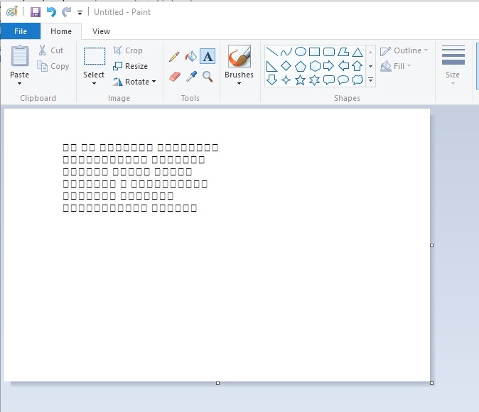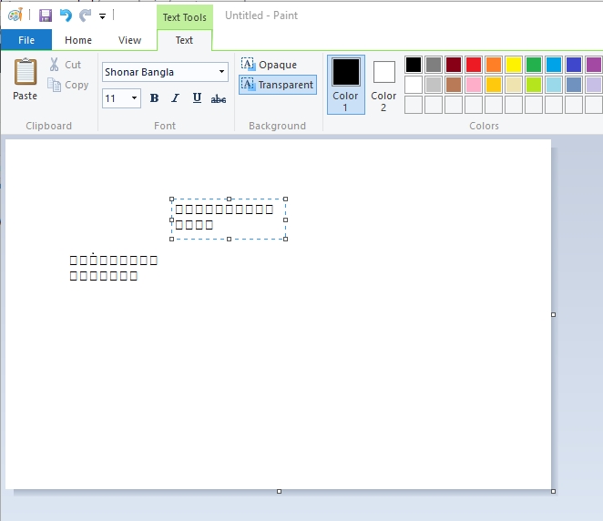 পেইন্ট প্রগ্রামে কোন ভাবেই বাংলা লিখতে পারছিনা। কিছু লিখলে এই রকম বক্স এর মত আসে।