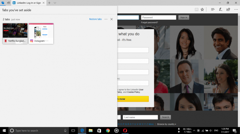 এটার কথা প্রথমেই বলছি কারন এটা উইন্ডোজ ১০ এর ফিচারড ব্রাউজার। প্রথমে উইন্ডোজ ১০ এ এটা ডিফলট ব্রাউজার হিসেবে থাকলেও প্রায় সবাই এটা চেঞ্জ করে অন্য ব্রাউজার ডিফল্ট সেট করে নেয়। অনেকে আবার এই ব্রাউজারটা ব্যবহারই করে শুধুমাত্র অন্য ব্রাউজার ডাউনলোড করার জন্য (আমিও এটাই করি)। কিন্তু তার মানে এই না যে এই ব্রাউজারটা ইউজলেস। ইউজলেস তো না, বরং কয়েকদিক থেকে এই ব্রাউজারটা অন্য যেকোনো ব্রাউজারের থেকে ভাল। প্রথমত, এখনো পর্যন্ত সবথেকে আধুনিক ডিজাইনের ব্রাউজার হচ্ছে Microsoft Edge।
