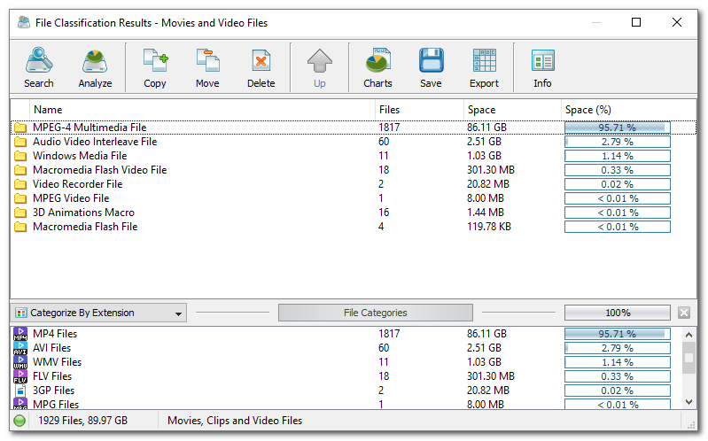 দেখতে পাচ্ছেন ভিডিও ফিল্টার করে দেখানো ছাড়াও আরো দেখানো হচ্ছে ক্যাটাগরিজ ভিউ। দেখতে পাচ্ছেন কোন ফরম্যাটের ভিডিও কেমন জায়গা দখল করে রেখেছে।