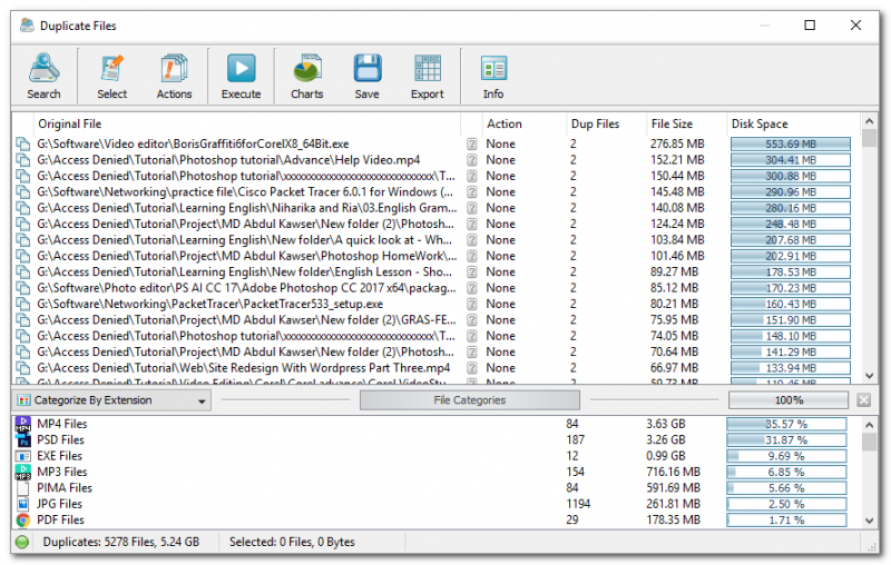 এটির সাহায্যে আপনার হার্ডডিস্কের বিভিন্ন স্থানে লুকিয়ে থাকা সমস্ত ডুপলিকেট ফাইলগুলোকে খুঁজে বের করতে পারবেন। যেমনটা আমি নিচের চিত্রে দেখালাম।