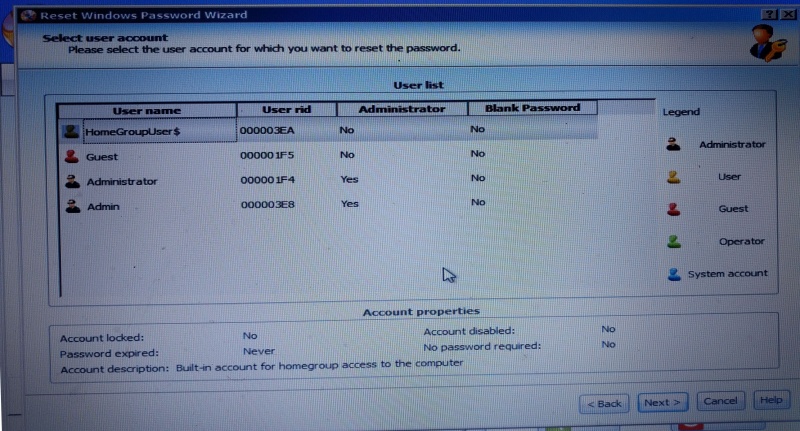 ৫. এখানে আপনার কম্পিউটারের সকল ইউজার নাম গুলি দেখতে পাবেন। এখন আপনি যেই ইউজার নামের Password ভুলে গেছেন, সেটি সিলেক্ট করে ‘Next’ ক্লিক করুন।