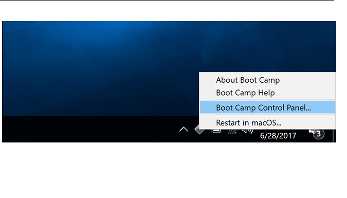 আপনি যদি ডিফল্ট ভাবে উইন্ডোজ কে বুট করতে চান তাহলে উইন্ডোজ এর ট্রে থেকে boot camp control panel এ যান।
