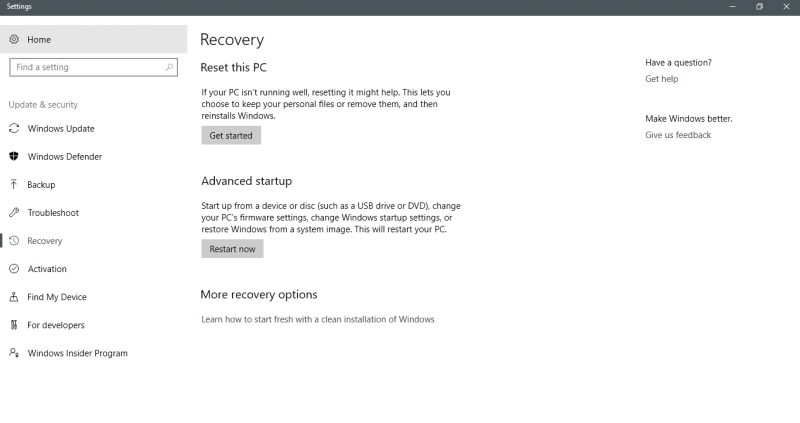 এর জন্য আপনার উইন্ডোজ সেটিংস্ থেকে “Recovery” অপশনটি খুঁজে বের করতে হবে। তাহলে দেখবেন সেখানে “Restart Now” নামে একটি অপশন আছে সেখানে ক্লিক করুন তাহলে উইন্ডোজ রিস্টার্ট হয়ে আপনাকে স্টার্টআপ অপশন্স এ নিয়ে যাবে।