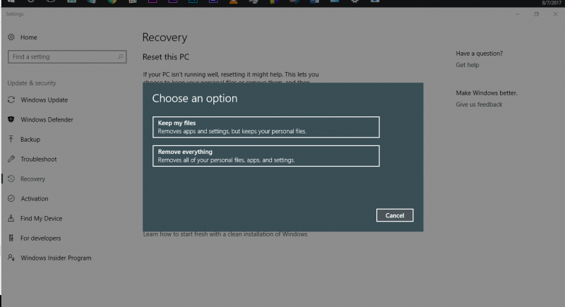 আপনি যখন আপনার কম্পিউটারে নতুন করে উইন্ডোজ দিতে চান সেটা অনেক ঝামেলার বিষয়। তাই আপনি উইন্ডোজের একটি ডিফল্ট ফিচার ব্যবহার করে খুব সহজে উইন্ডোজ পিসিকে রিসেট দিতে পারেন। এর জন্য আপনাকে উইন্ডোজ সেটিংস্ এর “Recovery” অপশন থেকে “Reset your pc “ অপশনটি সিলেক্ট করতে হবে। এর পর আপনি যদি আপনার সব ফাইল রাখতে চাল তাহলে “keep my files” অপশনটিতে ক্লিক করুন আর যদি চান জে সব ফাউল ডিলিট করে দিতে তবে নিচের অপশনটি সিলেক্ট করুন।