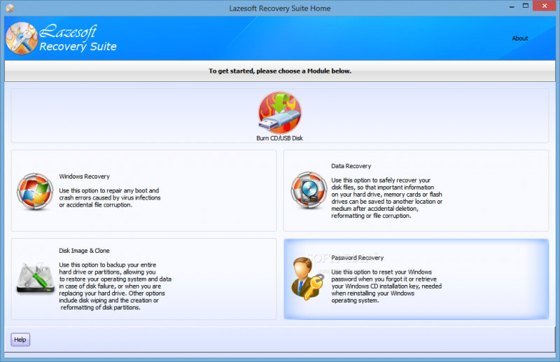 লেজেসফট রিকোভারি সুইট হোম ফ্রী এডিশন-- ফ্রী কেবল নন-কমার্শিয়াল ব্যবহারের জন্য। এটা একটা উইন্ডোজ PE বুট ডিস্ক তৈরি করতে সক্ষম; কিছু মডিউল এর দ্বারা আপনাকে সাহায্য করার মাধ্যমে। যেমন : বুট Error রিপেয়ার এর মাধ্যমে ক্র্যাশড উইন্ডোজ রিকোভার করা,দূর্ঘটনাবশত ডিলিট হয়ে যাওয়া কোনো কিছু রিকোভার করা, ডিস্ক ইমেজ ক্লোনিং বা তৈরি করা। উইন্ডোজ সিরিয়াল নাম্বার রিকোভার করা এবং পাসওয়ার্ড রিসেটিং এর মতন কাজ এটি দিয়ে করা সম্ভব।
