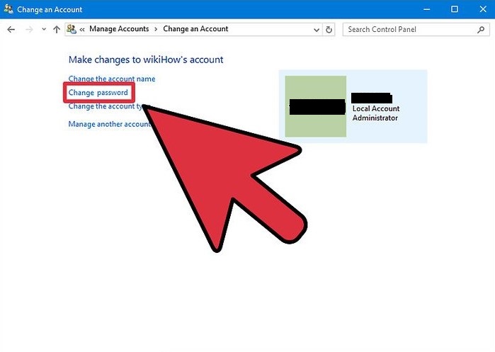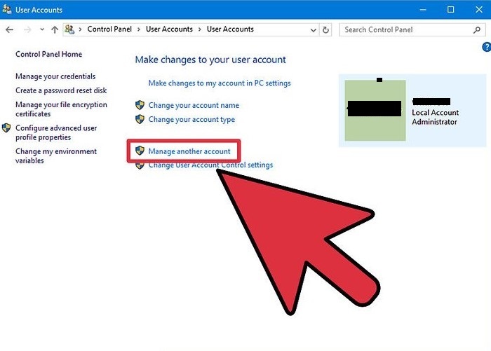 "Manage Another Account" ক্লিক করুন। অ্যাকাউন্টের তালিকাতে, ব্যবহারকারীর অ্যাকাউন্টটি নির্বাচন করুন যার পাসওয়ার্ড আপনাকে পুনরায় সেট করতে হবে।