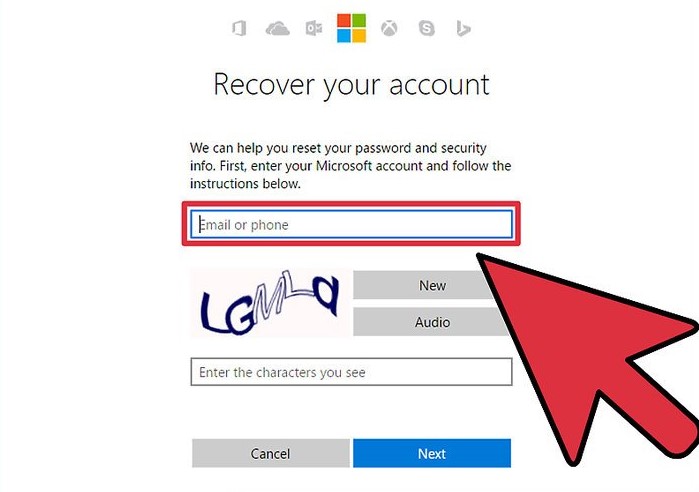 আপনার মাইক্রোসফ্ট অ্যাকাউন্টের ইমেইলকে ফাঁকা জায়গায় লিখুন। মাইক্রোসফ্ট অ্যাকাউন্টগুলি live.com, hotmail.com অথবা outlook.com দিয়ে শেষ হয়। যদি আপনার একাউন্টের নামটি ওয়েবসাইট কর্তৃক স্বীকৃত না হয়, তবে নিশ্চিত করুন যে আপনার ডোমেইনটি আপনার ইউজারনেম এর সাথে সংযুক্ত আছে (উদাহরণস্বরূপ, joesmith এর পরিবর্তে [email protected] এর লগ ইন করার চেষ্টা করুন)। ই-মেইল ক্ষেত্রের নীচের ছবিতে অক্ষর প্রবেশ করান, এবং তারপরে "Next" ক্লিক করুন।
