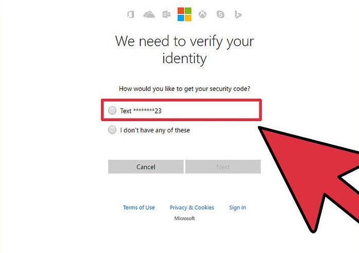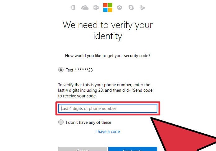 আপনার পাসওয়ার্ডটি রিসেট করার জন্য "Enter your security code" বাক্সে মাইক্রোসফ্ট থেকে প্রাপ্ত কোড লিখুন এবং "Next" ক্লিক করুন।