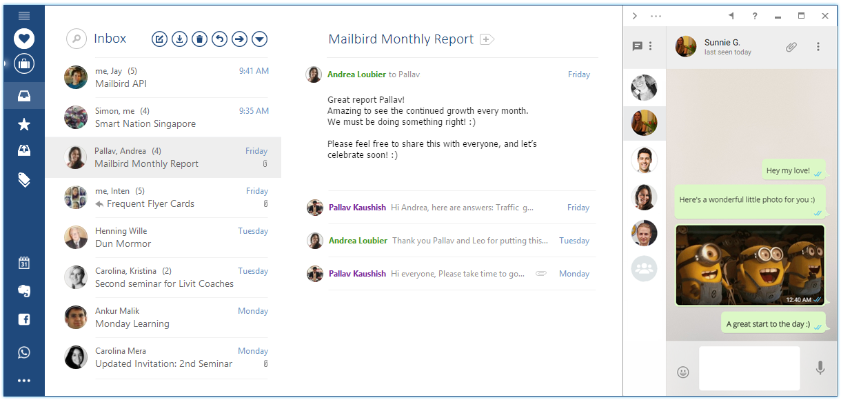 Mailbird apps – Dropbox, Evernote, Facebook, WhatsApp, Contacts Manager, Asana, Google Docs, Calendar, Veeting and more.