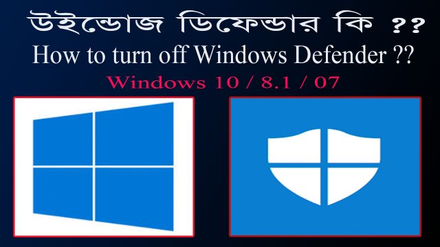 উইন্ডোজ ডিফেন্ডার কি ? || How To Turn Off / Disable Windows Defender || Windows 10 Windows Defender is an application which helps protect your computer against pop-ups, slow performance and security threats that are caused by spyware and other malware, by detecting and removing these threats from your computer. Windows Defender features Real-Time Protection;মাত্র উইন্ডোজ ডিফেন্ডার কি যথেষ্ট? যখন আপনি উইন্ডোজ 10 ইন্সটল করেন তখন আপনার একটি অ্যান্টিভাইরাস প্রোগ্রাম ইতিমধ্যে চালু হবে। উইন্ডোজ ডিফেন্ডারটি উইন্ডোজ 10-এ আসে, এবং স্বয়ংক্রিয়ভাবে আপনার প্রোগ্রামগুলি এটি দ্বারা খোলা যায়। উইন্ডোজ আপডেট থেকে নতুন সংস্করণ ডাউনলোড করে এবং একটি ইন্টারফেস প্রদান করে যা দিয়ে আপনি ইন-ডেথ স্ক্যান করতে পারেন। এটি কতটুকু যথার্থ? যখন পরীক্ষামূলক ভাবে দেখা হয় তখন দেখা যায়, মাইক্রোসফট এর অ্যান্টিভাইরাস; অন্যান্ন অ্যান্টিভাইরাস এর তুলনায় কিছুটা পিছিয়ে আছে। এই ব্যাপার টা নিয়ে আমরা বিশেষ করে চিন্তিত ছিলাম কারণ আমরা পূর্বে মাইক্রোসফটের অ্যান্টিভাইরাস পণ্যটি এতটাই পছন্দ করেছি। উইন্ডোজ