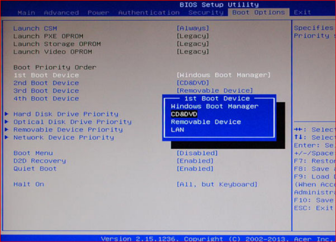 একবার আপনার বুটযোগ্য PCUnlocker সিডি থাকে, এটি কম্পিউটারে প্রবেশ করান যার পাসওয়ার্ডটি আপনি পুনরায় সেট করতে চান। যত তাড়াতাড়ি আপনি কম্পিউটার চালু করবেন, BIOS অ্যাক্সেস করতে একটি সিস্টেম সংজ্ঞায়িত কী (যেমন F12, ESC, DEL, F2) টিপুন। BOOT মেনুতে যান এবং সিডি / ডিভিডিটি প্রথম বুট বিকল্প হিসাবে সেট করুন।