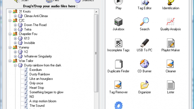 অডিওগ্রাইল (কে-এমপি 3) অডিও ফাইলের সাথে সম্পর্কিত সমস্ত কিছুর জন্য সুইস আর্মি নাইফ (MP3, MPC, OGG.)। এটি খুব সহজে আপনার ফাইলগুলিকে পুনঃনামকরণ এবং ট্যাগ করতে পারে (ট্যাগ: শিল্পীর নাম, অ্যালবাম, ট্র্যাক শিরোনাম)। এটি মানের বিশ্লেষণ করতে পারে, আপনার সিস্টেমে ফাইল সংগঠিত করতে পারে, সদৃশ ফাইলগুলি খুঁজে পেতে সাহায্য করে এবং আপনার প্রতিদিনের অডিও অভিজ্ঞতার উন্নতি করতে পারে!