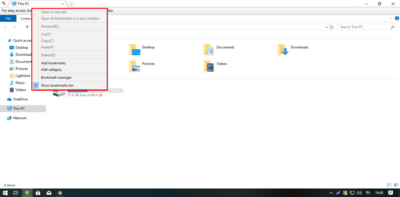৬ এমবির একটি ছোট্ট একটি সফটওয়্যার যা আপনার কাজের গতিকে অঙ্কে গুন বৃদ্ধি করে। Ctrl + D প্রেস করে বর্তমান ফোল্ডার বুকমার্ক করতে, অথবা ফোল্ডার ড্রাগ করে নিয়ে বুকমার্ক বার এ নিয়ে ছেড়ে দিলেই আপনার কাংখিত ফোল্ডার টি বুকমার্ক করতে পারবেন। সারা স্টোরেজ হন্ন হয়ে এর ফাইল বা ফোল্ডার খোঁজা লাগবে না, তাৎক্ষনিক আপনার বুকমার্ক করা ফোল্ডারে চলে যান, কত সময় বাঁচল!