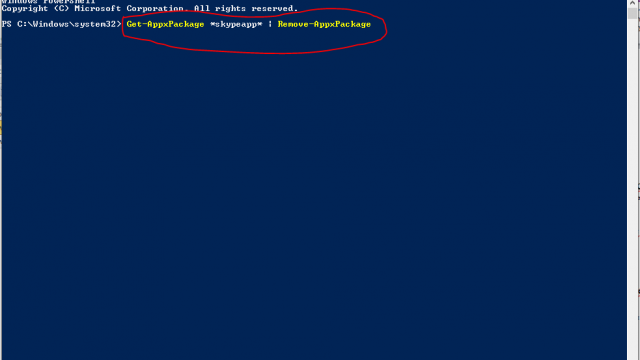Skype:- Get-AppxPackage *skypeapp* | Remove-AppxPackage