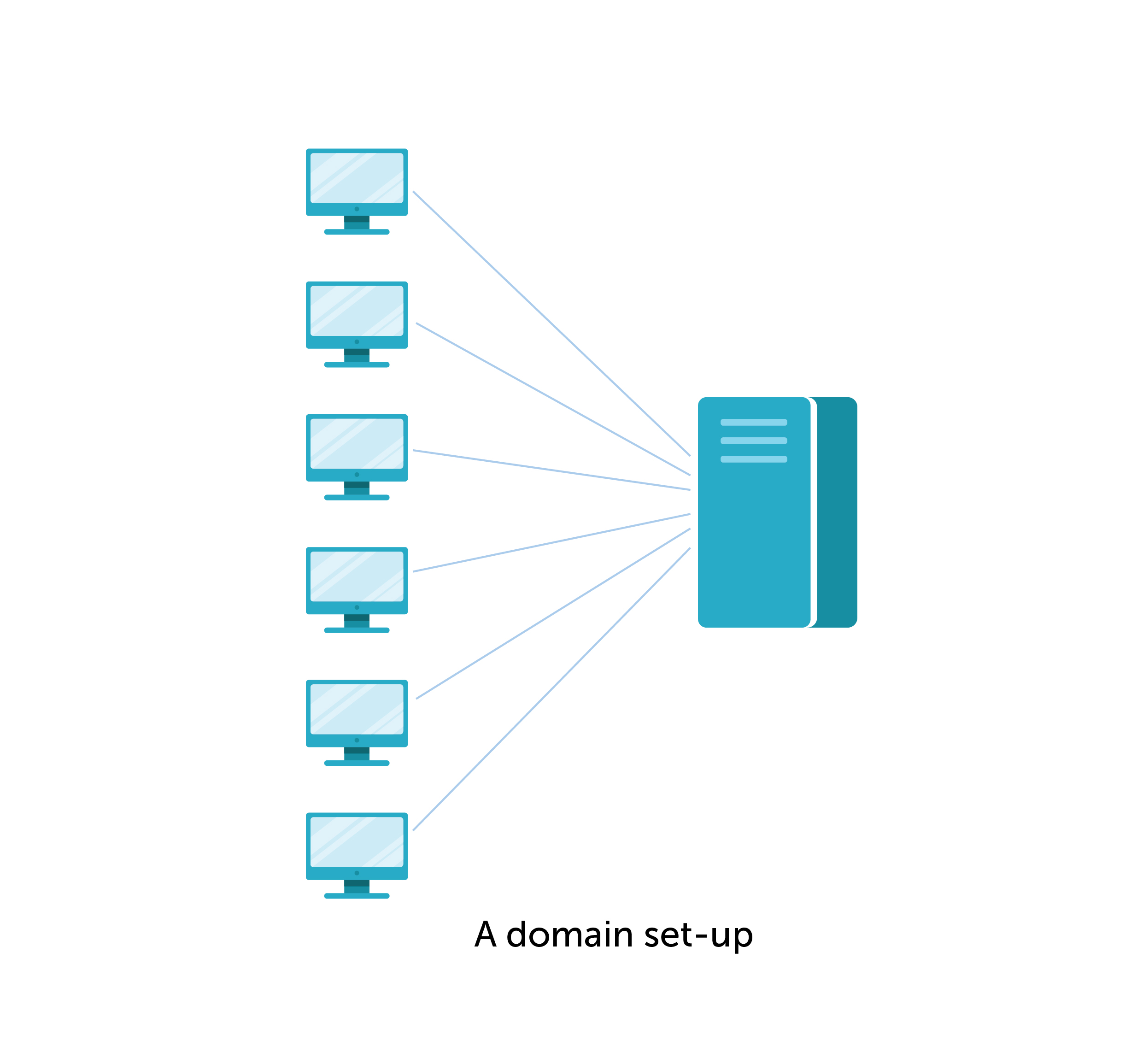 আমরা বিভিন্ন ব্যবসায় প্রতিষ্ঠান বা অফিস আদালতে যে কম্পিউটার গুলো ব্যবহার করি সেগুলোই হচ্ছে এককটা Windows Domain। আমি যদি আরও সহজ ভাবে বলি, ধরুন আপনি একটি অফিসে আরও ২০০ জনের সাথে কাজ করেন এবং সবার একটি করে কম্পিউটার আছে, এই আলাদা আলাদা কম্পিউটার গুলোই হল একেকটা Windows Domain। এবং এই সমস্ত Windows Domain গুলো একটি কেন্দ্রীয় পিসির মাধ্যমে নিয়ন্ত্রিত হয় যাকে বলা হয় Domain Controller। Domain Controller এর মাধ্যমে নির্ধারণ করা হয় অফিস বা শিক্ষা প্রতিষ্ঠানের বাকি কম্পিউটার গুলো কিভাবে চালিত হবে।