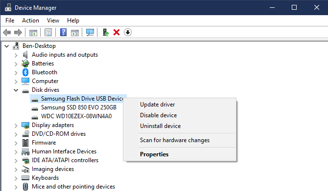 আপনার পিসি থেকে Device Manager এ প্রবেশ করুন এবং Disk Drivers ক্যাটাগরিতে ক্লিক করুন। যদি সেখানে কোন হলুদ সংকেত দেখতে পান তাহলে হতে পারে এখানে সমস্যা। Properties এ ক্লিক করে error মেসেজটি ভাল করে পড়ুন না বুঝতে পারলে গুগলে সার্চ দিন।
