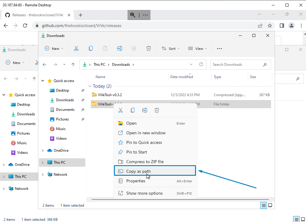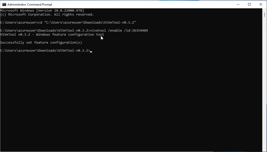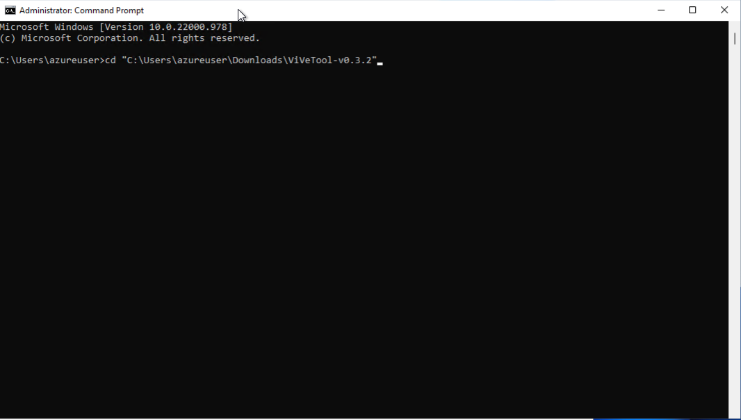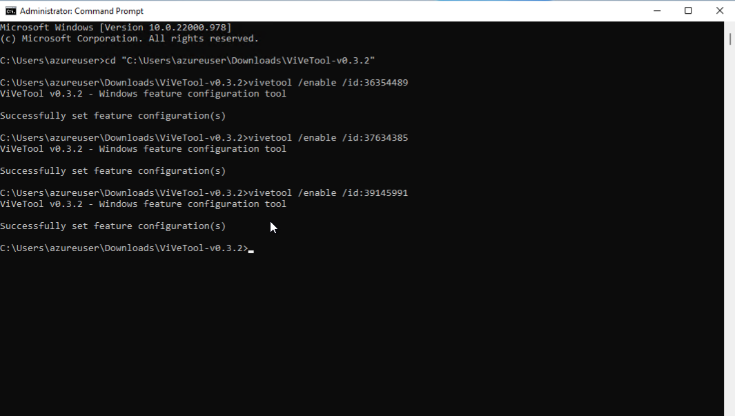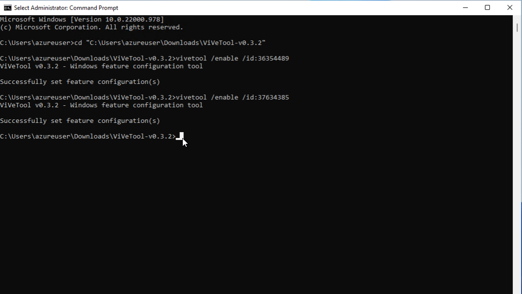 "C:\Users\azureuser\Downloads\ViVeTool-v0.3.2"